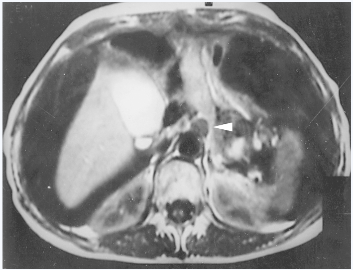 图8 胃贲门癌伴后腹膜间隙淋巴转移